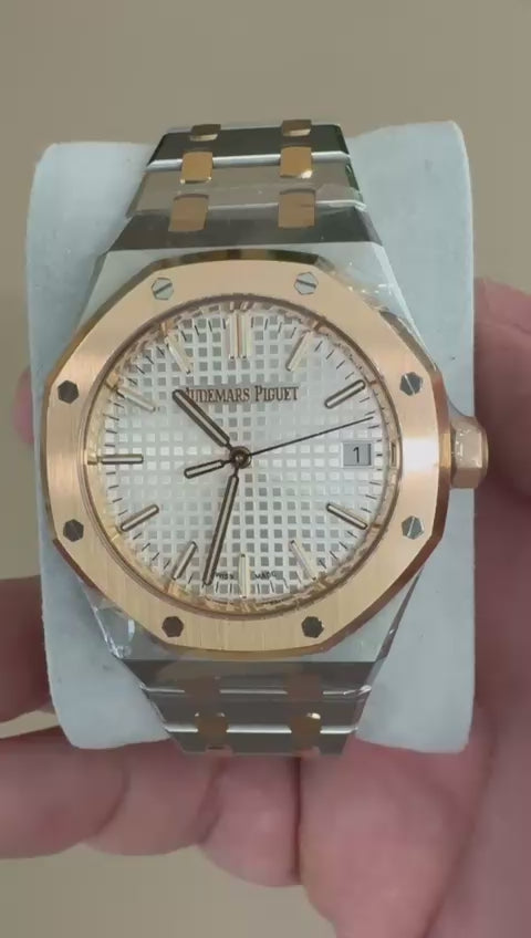 Inside, this reference houses the Audemars Piguet Calibre 5900 automatic movement, delivering reliable timekeeping with a power reserve of approximately 60 hours. The two‑tone stainless steel and pink gold bracelet integrates seamlessly with the case, offering a comfortable and elegant wrist presence. Water resistant to 50 meters with a sapphire crystal and exhibition caseback, the 15550SR.OO.1356SR.02 is ideal for collectors seeking a high‑end luxury sports watch that blends traditional design with modern performance and finishing.