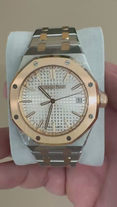 Audemars Piguet Royal Oak 37mm – Two‑Tone Stainless Steel & 18k Pink Gold – Silver Grande Tapisserie Dial – Fixed Pink Gold Bezel – Two‑Tone Bracelet – 15550SR.OO.1356SR.02 – 2024